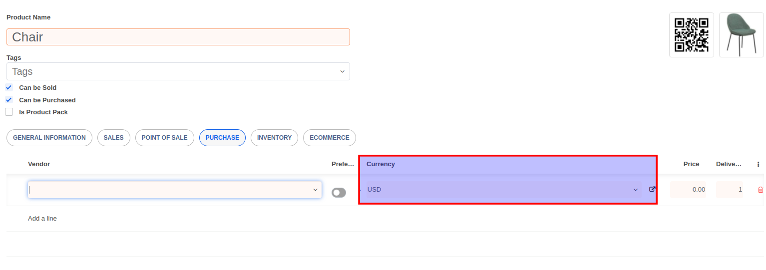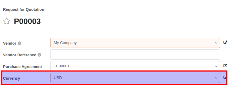 The currency selection will also be available in the purchase order form.