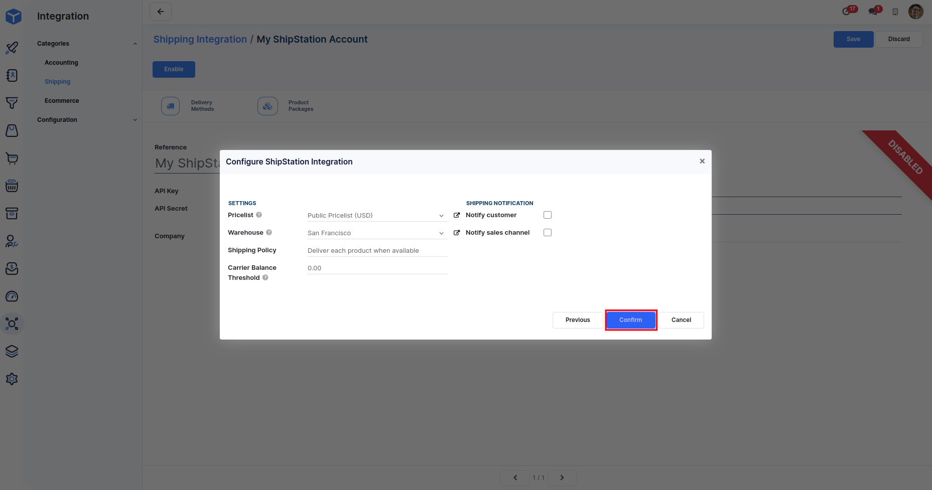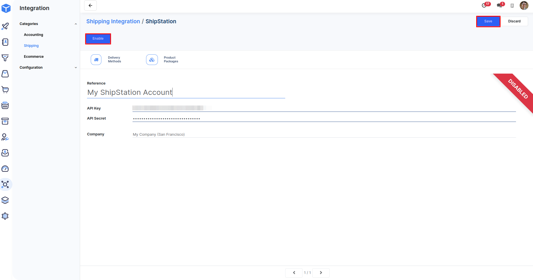 Enter your ShipStation API Key and API Secret and click on the Enable button.
