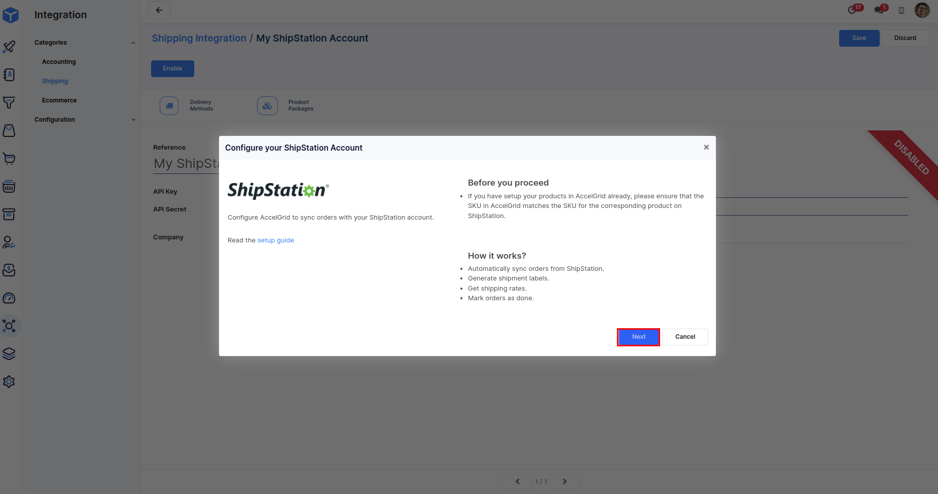 How to integrate AccelGrid with ShipStation?