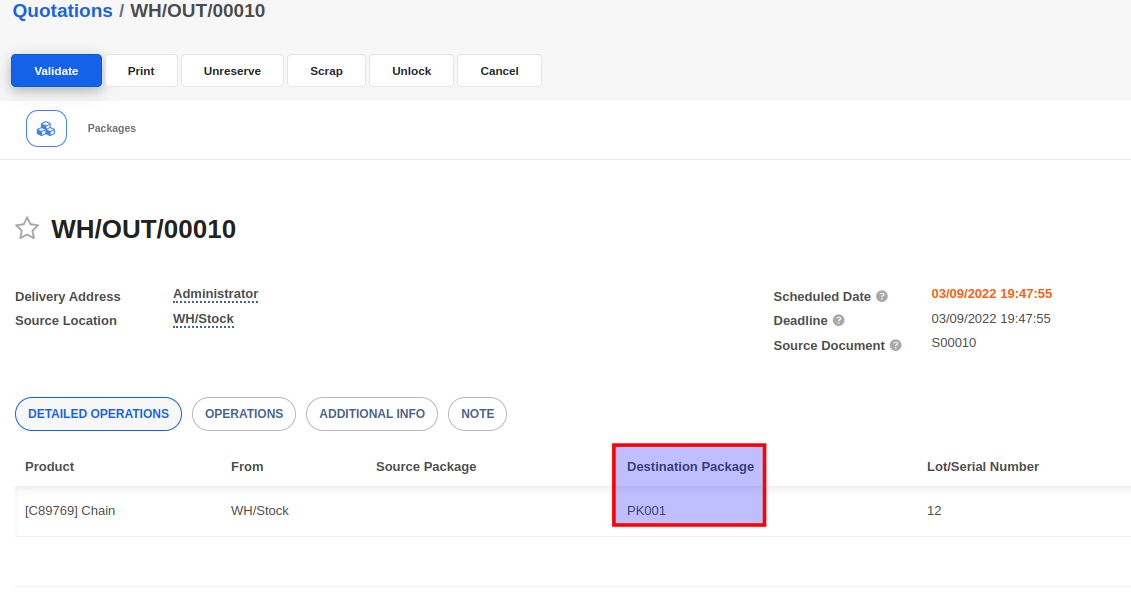 Once you have enabled the Delivery Packages setting, you will have the option to create and assign packages to operation lines.