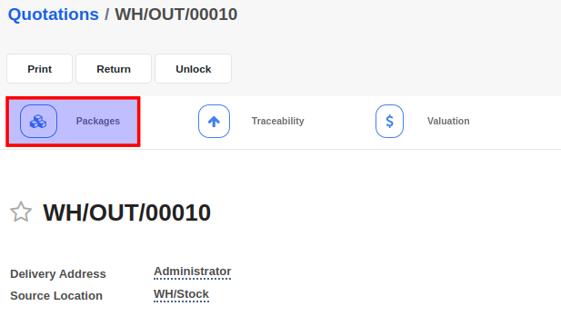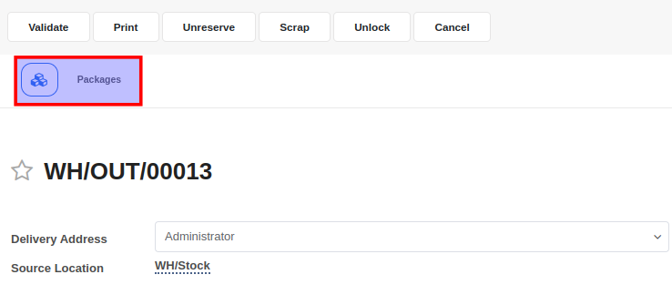 The packages linked to a delivery order can be accessed using the Packages button in the delivery order.