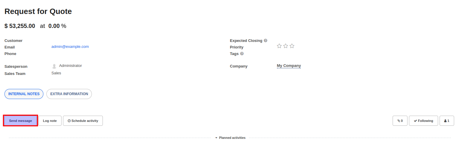 Recipients: By default, the message will be sent to the prospect's email address specified in the opportunity and also to all followers of the opportunity. To learn how to add and manage followers, click here.
